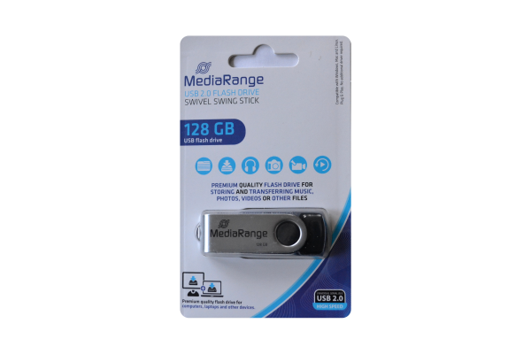 De MediaRange 128GB USB 2.0 Flash Drive staat voor betrouwbaarheid en degelijkheid. Betreft een USB 2.0 usb stick. De leessnelheid is tot 17mb/s en de schrijfsnelheid tot 8mb/s. De uitvoering is in Swivel vorm, hetgeen betekend dat de kwetsbare usb uitgang veilig opgeborgen kan worden (middels draaien) in het metalen gedeelte van de usb stick na gebruik.